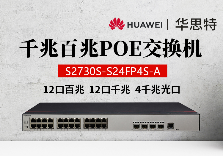 S2730S-S24FP4S-A(12個(gè)10/100BASE-TX以太網(wǎng)端口,12個(gè)10/100/1000BASE-T以太網(wǎng)端口,4個(gè)千兆SFP,PoE+,交流供電),交換容量336Gbps,包轉(zhuǎn)發(fā)率25.8Mpps,POE輸出380W